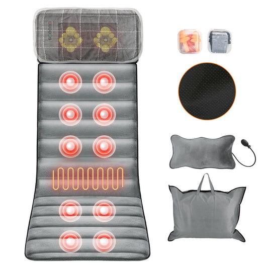 Full Body Electric Massage Mat with Heat Vibration Massage Pad Cushion Back Massage Mattress Chair Pad with Inflatable Head Pillow Lumbar Pillow with 10 Vibration Motors 3 Timers