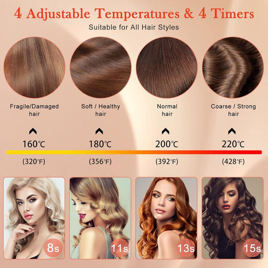 Automatic Curling Iron, Ceramic Ionic Auto-Rotating Hair Curling Wand with Anti-Stuck Technology - Black